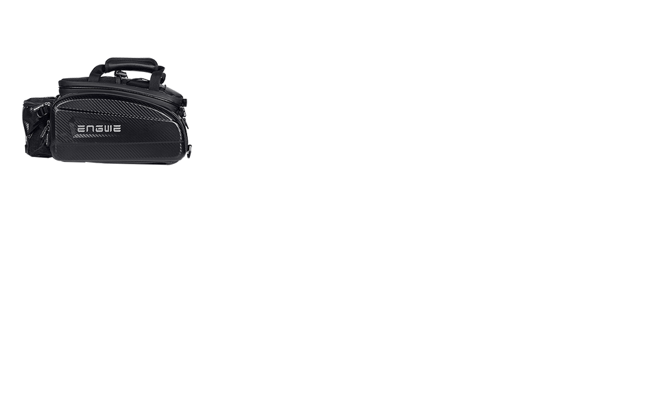 Le sac de coffre de vélo Engwe, fabriqué en cuir composite de carbone résistant à l'eau, présente une conception pliable qui se transforme en sacoche pour un rangement supplémentaire. Il comprend des bretelles pour une utilisation comme sac messager, avec un intérieur rembourré pour réduire les chocs. Fabriqué en polyester 420D durable et en tissu Oxford imperméable, il est facile à nettoyer et parfait pour le cyclisme. Remarque : le sac de porte-bagages arrière de 35 L n'est pas compatible avec les séries M20 et X (X20/X24/X26).