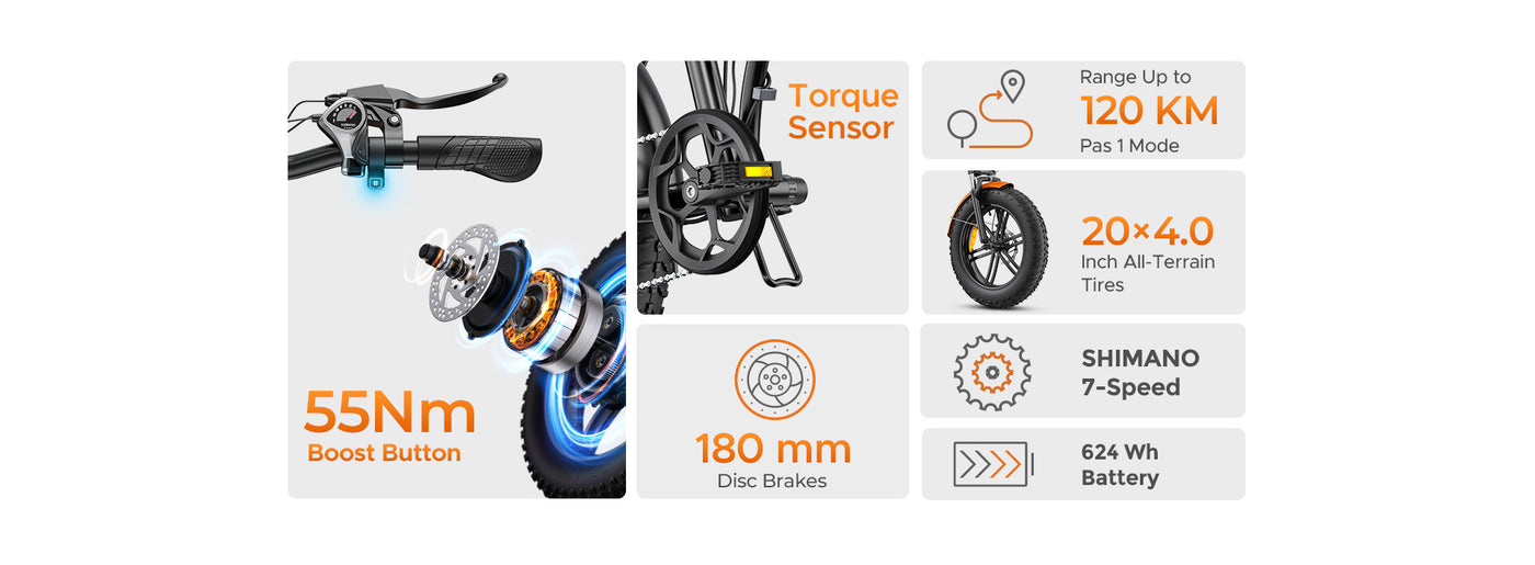 Press the Boost button for an instant power surge, propelling you uphill with ease.